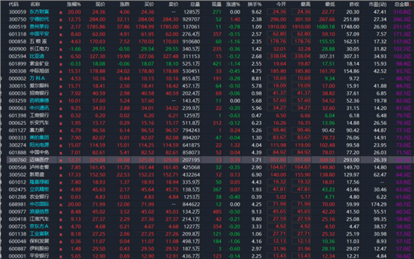 个股也急速放量,截至中午收盘时,东方财富半日成交额超过310亿元,位居两市第一,而东方财富此前一个交易日全天的成交额为306亿元;宁德时代成交额超266亿元,此前一个交易日全天的成交额为222.5亿元;贵州茅台成交额达到251亿元,此前一个交易日全天的成交额为269.8亿元;此外,中国平安、五粮液半日成交额均超过150亿元,均较前一个交易日大幅放量;比亚迪、长江电力的半日成交额也超过了100亿元。