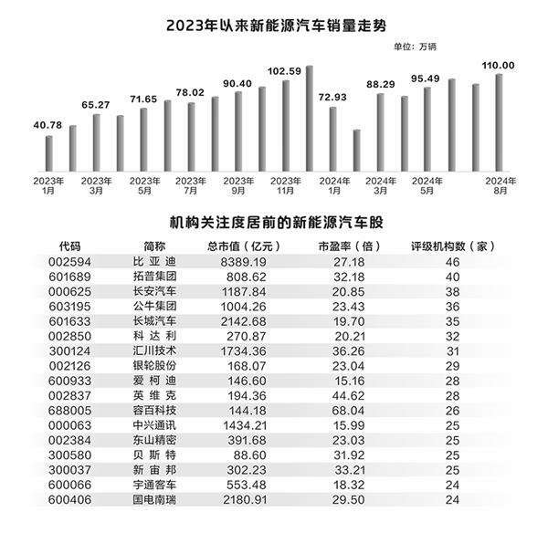 以旧换新政策加码后,新能源汽车前景持续向好,多家机构看好未来销量进一步增长。