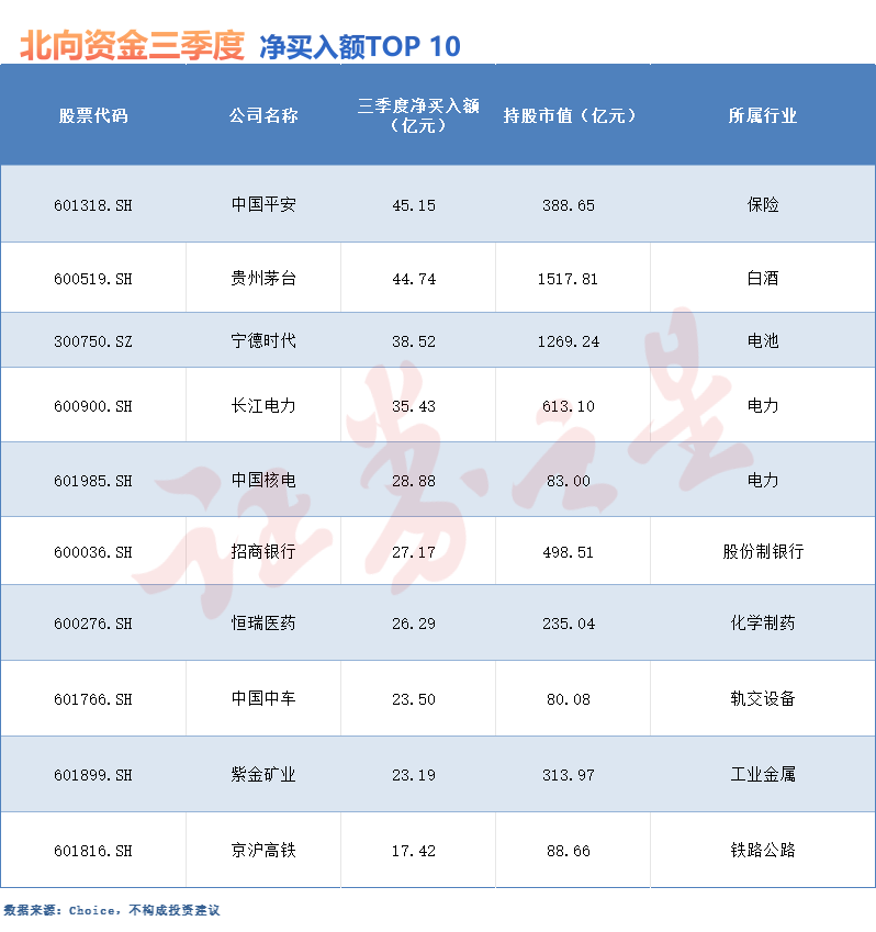 在这些公司中,中国平安成为了北向资金加仓金额最高的个股,加仓金额超过了45亿元。这一增持行为与中国平安在三季度超过40%的股价涨幅相呼应,反映出北向资金对该公司未来发展潜力的高度认可。