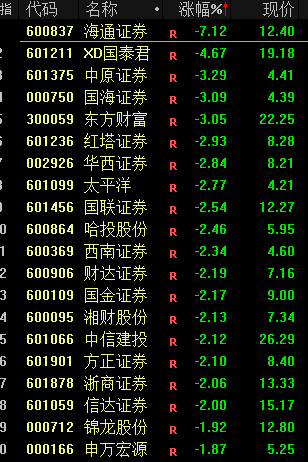 下跌方面,券商等金融股走低,海通证券跌逾7%。