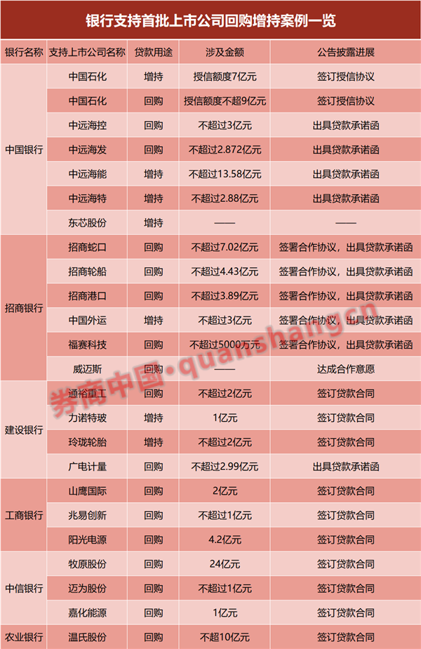 首批参与回购增持贷款的上市公司中,亦有多家公告称,已取得商业银行出具的贷款承诺函。