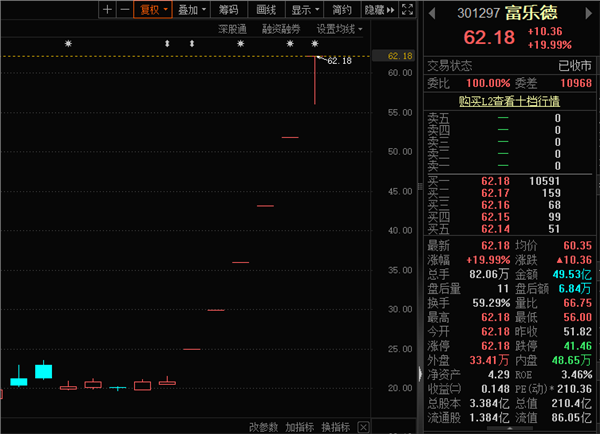 截至24日收盘,富乐德总市值210.41亿元,滚动市盈率高达209.94倍,短期炒作情绪高涨。当日收盘龙虎榜数据显示净流出1.8亿元,中信证券上海东方路营业部及东方证券上海黄浦区中山南路第一营业部分别净卖出1.83亿元、1.54亿元。