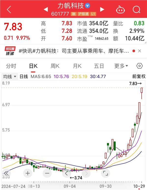 近日,股价斩获5天3板的力帆科技于昨日晚间发布股票交易风险提示公告称,鉴于公司股票价格短期涨幅较大,可能存在非理性炒作。公司2024年19月新能源汽车销量同比下降8.24%,且存在业绩亏损风险。