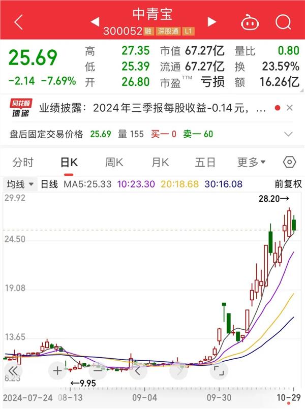 从股价表现来看,中青宝的股价自今年8月初的低点以来,已累计上涨近160%,股价实现翻倍。