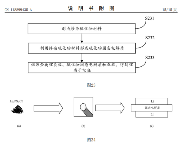 发明专利的背景是,硫化物固态电池在充放电过程中,金属锂负极与硫化物电解质的界面副反应严重,影响电池寿命。对此,该专利通过掺杂包括氮元素等材料,使得掺杂硫化物材料对金属锂具有较佳的稳定性,制备的锂离子电池具有较长的使用寿命。