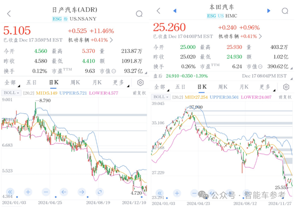 截至目前,本田汽车的市值为390.6亿美元(约2846亿元),日产市值93.27亿美元(约680亿元)。