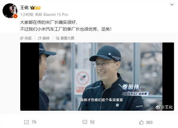 值得一提的是,此前网传消息,宋钢将投奔小米。但今天上午,小米公关部总经理王化发布微博澄清:大家都在传的宋厂长确实很好,不过我们小米汽车工厂的季厂长也很优秀,足矣!