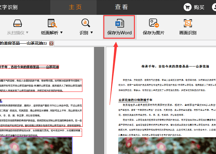 4.软件识别完成后,点击软件界面上的“另存为Word”,将识别出的文本内容保存为可编辑的Word文本。