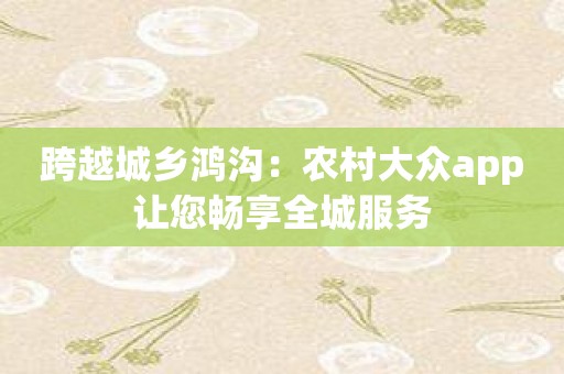 跨越城乡鸿沟:农村大众app让您畅享全城服务