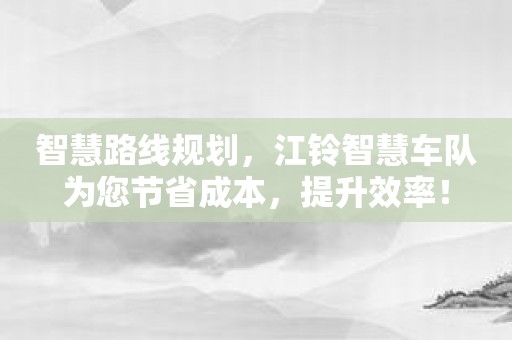 随着科技的不断发展,智能化已经成为现代社会的一个重要趋势。在交通领域,智慧路线规划成为了提高效率、降低成本的重要手段。江铃智慧车队应用,凭借先进的智能技术和精确的数据分析,为您节省成本,提升效率!