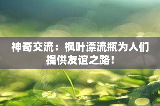 总之,神奇交流:枫叶漂流瓶是一款非常有趣的App,它能够给我们提供友谊之路,让我们能够结交到更多的朋友。如果你想扩展自己的社交圈子,体验不同文化背景,那么这个App是一个非常不错的选择。快来下载使用吧!