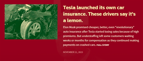 以及特斯拉自营保险的客户需要等待数月之久才能得到赔偿等。