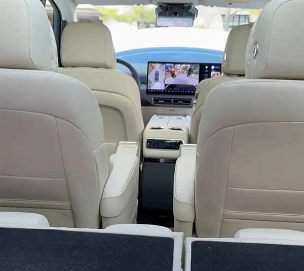 前排还配备双50W无线充电面板,冷藏加热双用后排冰箱也同样在新车上配备,第二排中间过道区域也是比较大的,预计能让成年人很好通过。