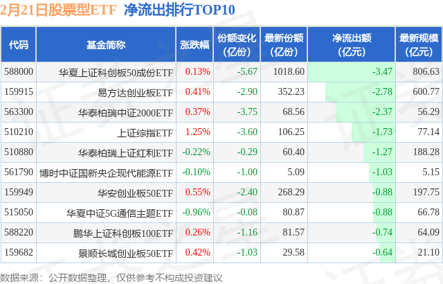 当日有551只股票型ETF基金出现资金净流入,其中净流入排首位的是华泰柏瑞沪深300ETF,份额增加了3.36亿份,净流入额为35.93亿元。净流入排行TOP10如下: