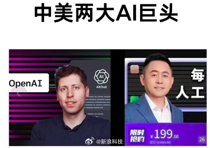有网友放出了两大AI巨头图片,图中二人分别是OpenAI的萨姆奥特曼,和卖AI课程的清华博士李一舟,调侃意味十足。