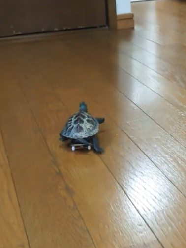 网友@Mh0MLiErcV8E97C家的小龟掌握了一项绝技,那就是玩滑板,而且玩得非常熟练,看起来像是在备战下一场龟兔赛跑。