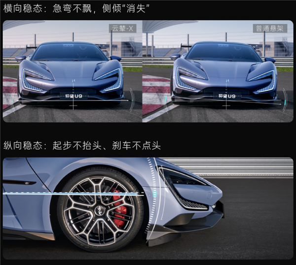 更为重磅的是,仰望U9还搭载了比亚迪云辇-X智能全主动车身控制系统。