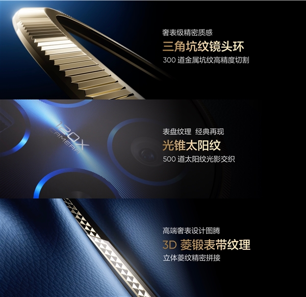 在工业设计上,真我12 Pro+由真我和高端腕表大师联合设计,这款新品的三角坑纹镜头环、光锥太阳纹、3D菱锻表带纹理都是奢表级工艺,机身背部是真我GT5 Pro同款高阶科技纳米皮,支持超50万次耐磨。