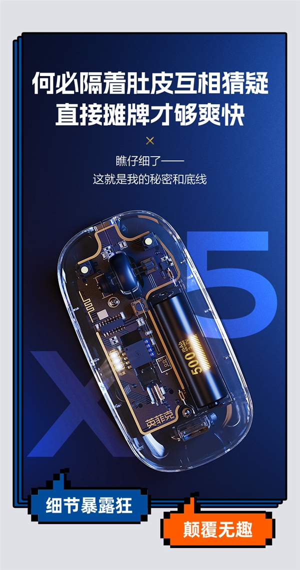 天猫英菲克旗舰店,英菲克 X5 透明无线鼠标 日常售价59元,今日下单可领30元限时券 ,叠加3元首单礼金(随时结束),实付仅需26元好价。
