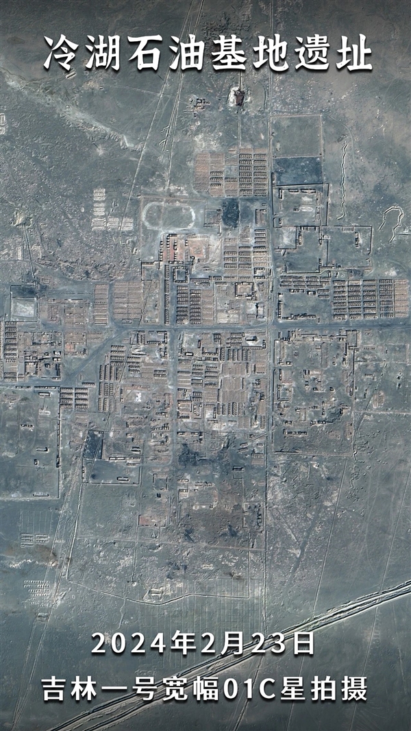 从吉林一号卫星的视角俯瞰冷湖,道路笔直,房屋整齐,规模宏大,当初的繁华仍依稀可见,令人唏嘘。