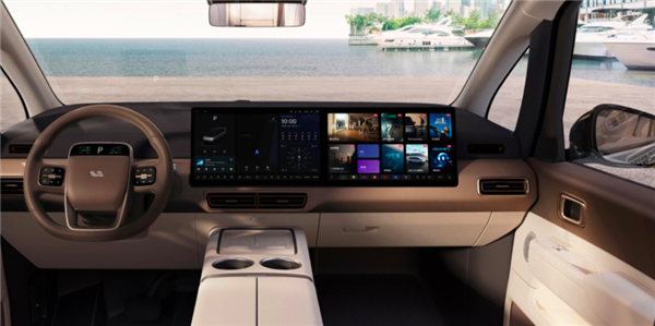多功能方向盘也和L系列一致,取消了仪表板,搭配大尺寸的AR-HUD抬头显示和Touch Bar触摸屏等。不过,理想MEGA采用了双层中控台,两侧改为双横向空调出风口。