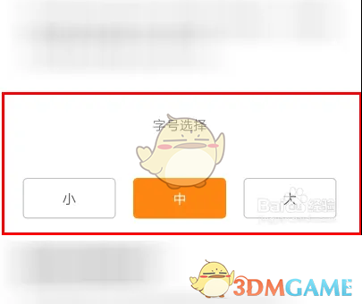 5.有三种选择:小号、中号和大号。选择其中一个,如果方框变为橙色,则设置成功。