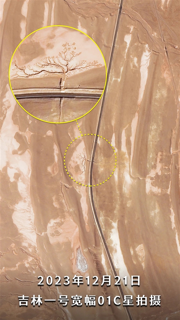 在特殊的地势条件下,从空中俯瞰仿佛是一棵参天巨树,水流冲刷的痕迹构成了躯体与枝干。