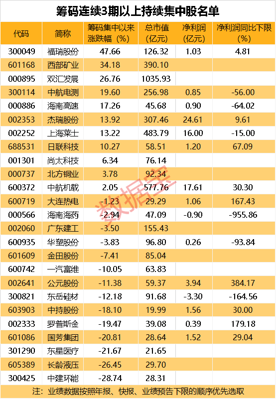 拉长时间区间来看,25股股东户数连续减少3期以上,最长已连降22期,筹码呈持续集中趋势。