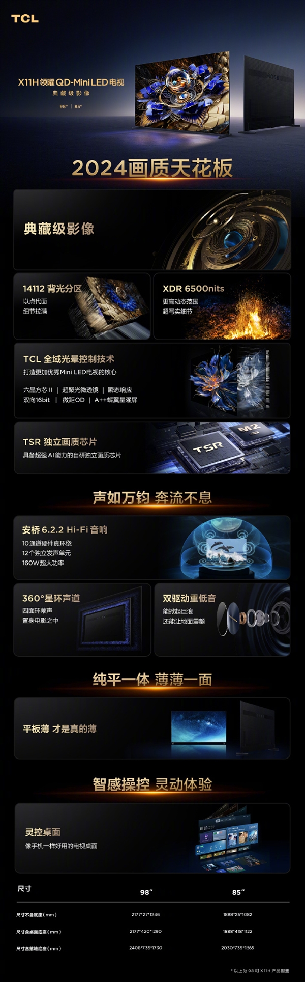 3月6日消息,今日下午,TCL X11H Mini LED电视发布,号称2024画质天花板。