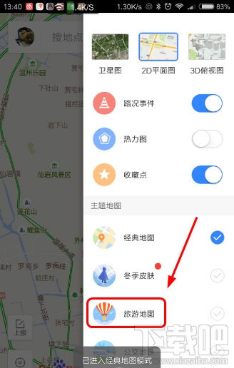 科技苑 教程 手机百度地图旅游地图怎么使用(手机百度地图旅游地图怎么使用的) 手机百度地图旅游地图怎么使用(手机百度地图旅游地图怎么使用的) 作者: hao168 发布:2024-03-08 15:34:35 2878阅读 6959评论 手机百度地图旅游地图怎么使用, 百度地图APP出行模式开启教程: 1.点击右侧第三个按钮,即图层按钮。 2.单击面板底部的【旅行地图】。 3.现在您可以看到附近值得游玩的旅游景点,并且可以通过相同的操作返回到【经典模式】。 手机百度地图旅游地图怎么使用,以上就是本文为您收集整理的手机百度地图旅游地图怎么使用最新内容,希望能帮到您!更多相关内容欢迎关注。 本文来自网络,不代表本站立场,转载请注明出处:https:temp