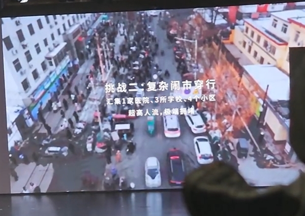 2、复杂闹市穿行:道路侵占避让、车辆/行人避让、车辆/行人绕行、无保护复杂路口通行;