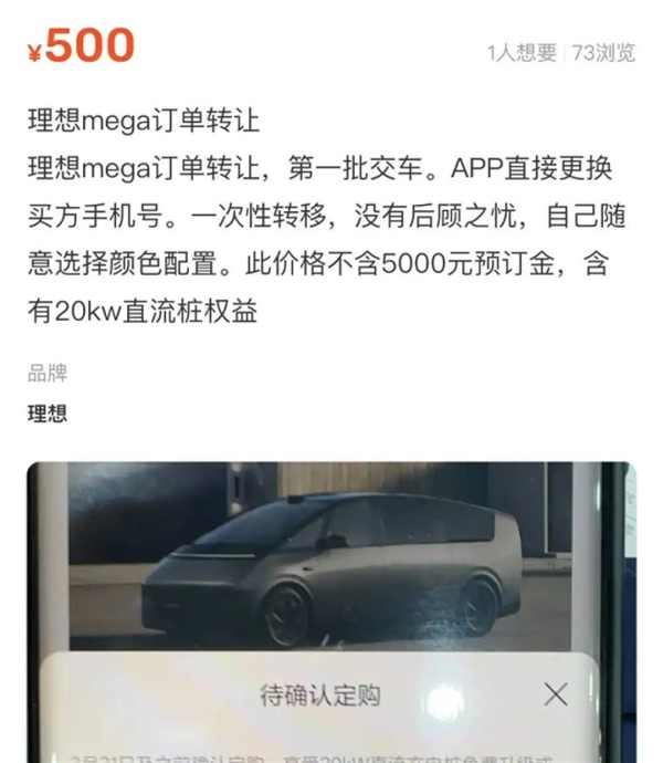 而且在第三方的二手交易平台上,确实出现了不少理想MEGA订单转让的页面。