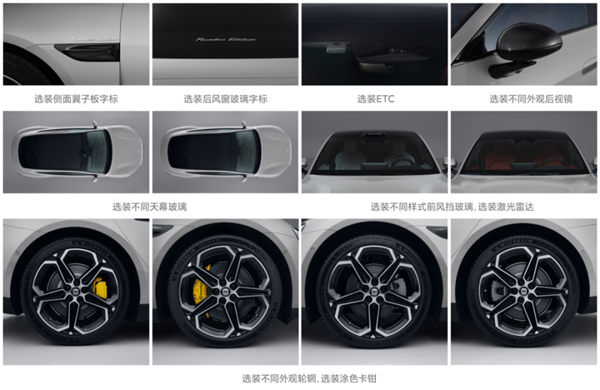 除此之外,根据工信部的申报信息,ETC,后视镜样式,天幕玻璃,轮毂及卡钳涂色都可选装。