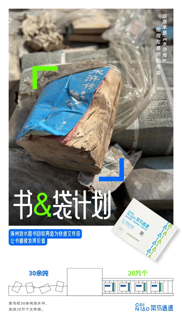 据了解,涿州水灾发生之后,菜鸟马上参与到救援物资的运输。随着对涿州的了解,我们才知道,这里是全国图书仓储重镇,水灾导致大量图书损毁。
