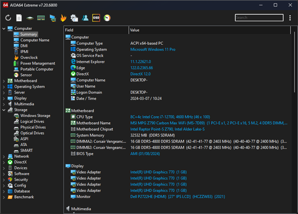 首先,AIDA64 7.20终于加入了黑暗模式,可选黑、灰、深蓝三种风格,可跟随Windows系统自动切换。