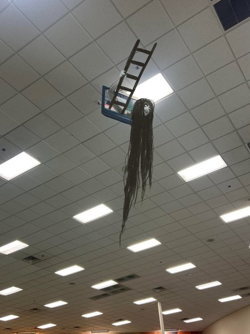 网友@waziot在发现了一台悬挂得很高的电视后,突然想到了一个问题,那就是如果用它来看《午夜凶铃》,贞子爬出来的时候会不会摔断脖子。