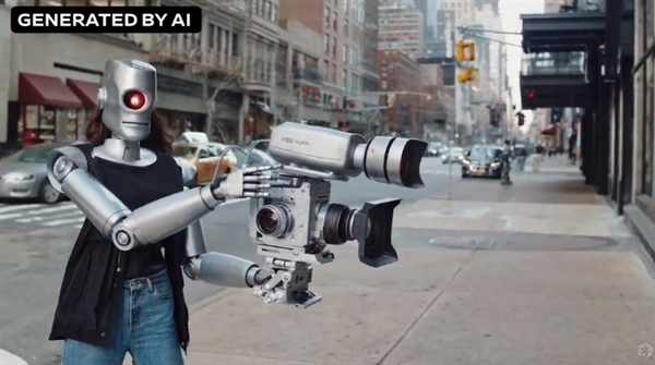 而Sora对此的诠释是人类电影制片人直接变形成为了机器人。此外,在背景中的一辆黄色出租车,也在机器人夺舍的过程中变成了一辆银色轿车。