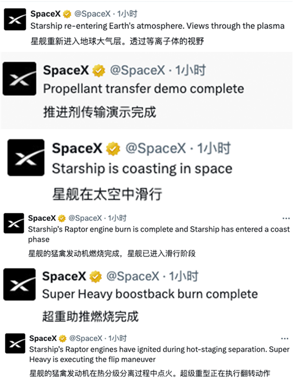 而像超 TM 重助推器的回收、星舰飞船再入这些也都完成了一部分。
