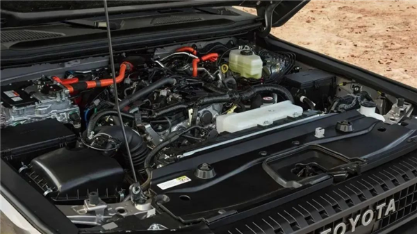 动力方面,为了满足国六排放法规的要求,丰田普拉多搭载了一套2.4T发动机+电动机组成的混动系统。