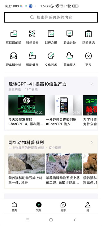 3.内部还有一个选项卡,用户可以在视频分类中找到自己想看的视频。