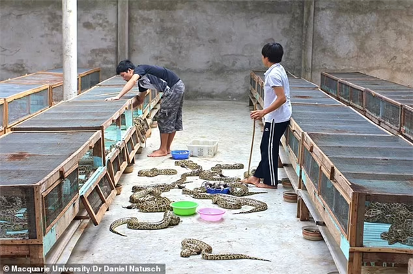 整个研究团队密切研究了东南亚2个蟒蛇养殖场,主要养殖缅甸蟒和网纹蟒,共记录了4600多条蛇一年的监测数据,结果这些数据均表明:蟒蛇非常适合商业化养殖。