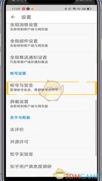 3.单击帐户和安全。