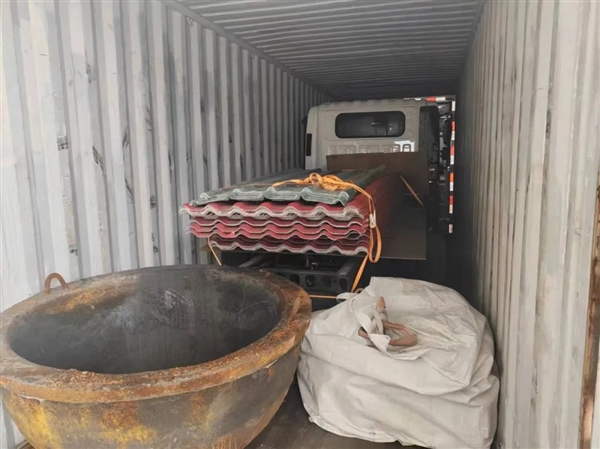 开箱查验发现,靠箱门处一排疑似袋装封门货物,其后为一辆小型载货卡车,也就是说,大车内套着另外一辆小车,目前,该关已依法暂扣该批货物。