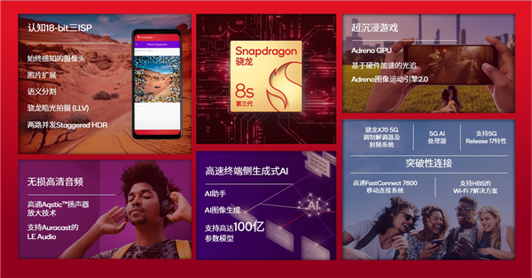 高通技术公司高级副总裁兼手机业务总经理Chris Patrick表示:第三代骁龙8s凭借终端侧生成式AI、先进影像特性等丰富特性,旨在提升用户体验,助力用户在日常生活中迸发创造力和生产力。