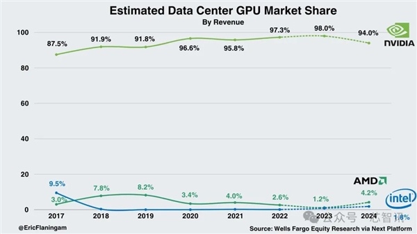这将导致NVIDIA的市场份额可能将小幅下滑到94%。