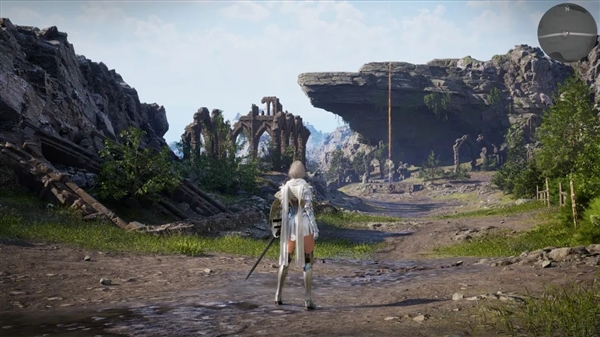 放眼望去,远处依稀可以看到崩塌损毁的建筑,以及一道冲天而上的黄色光柱,后来我才知道,那个是恢复点,相当于黑魂里的篝火。