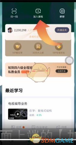 2.进入学习界面后,找到并点击界面顶部的【加入课程】选项。