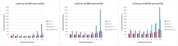 三、Garnet在第99及第99.9百分位上表现出更好的客户端延迟水平,更高比例的稳定性表现对于现实场景而言至关重要。