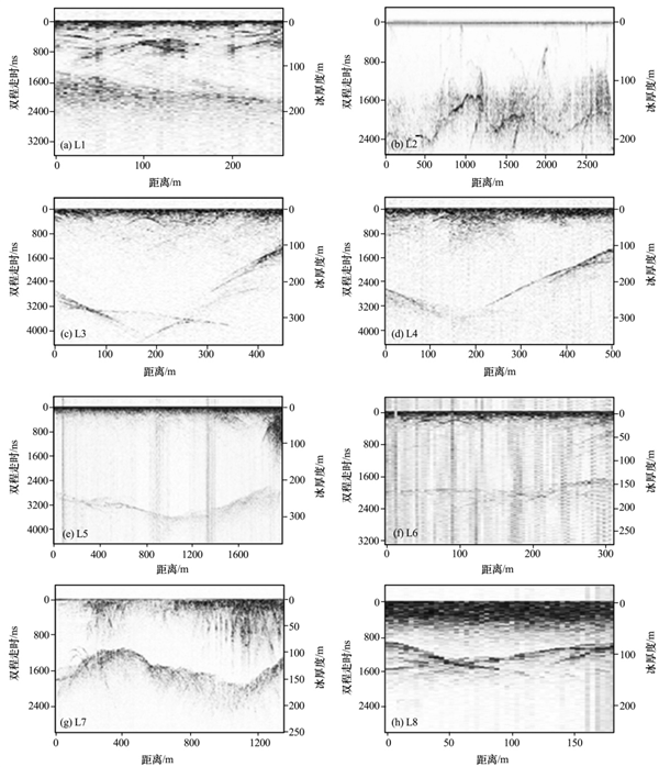 依次为东绒布冰川L1-L8的雷达实测图,可以清晰看到冰层厚度和冰下地貌。【1】