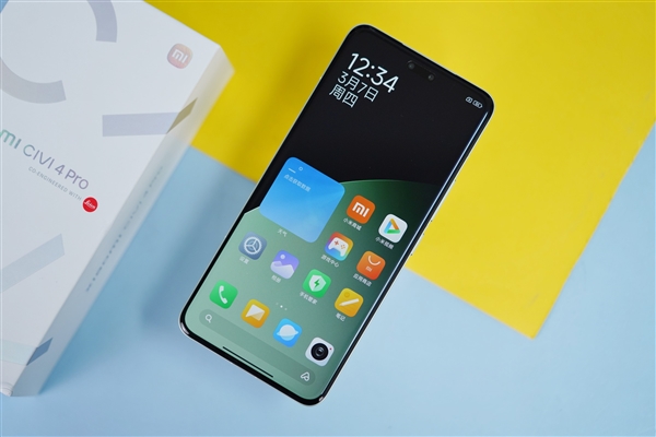 设计方面,小米Civi 4 Pro延续了前置双摄居中挖孔、后置圆形模组,背部升级绮彩鎏光工艺,打造出春野绿配色,每一台都独一无二。